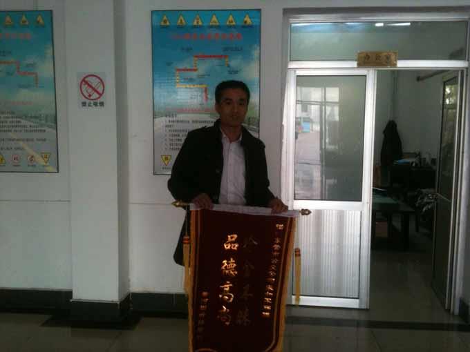 2013年10月29日,黃河固井隋增凱師傅拿著一面寫有“拾金不昧、品德高尚”的錦旗來到市公交公司汽車一隊,感謝車隊張如軍師傅拾金不昧的高尚品德。