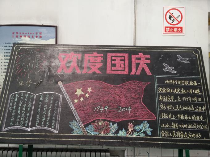 黑板報是保修廠文化的重要窗口之一,既體現(xiàn)了保修廠的特色和氣質(zhì),又營造了喜迎國慶的節(jié)日氛圍,職工們有的刷黑板、有的找資料、有的畫圖案、有的書寫,大家在辦板報的過程中,相互協(xié)作,共同祝福祖國繁榮昌盛、公交事業(yè)蒸蒸日上。