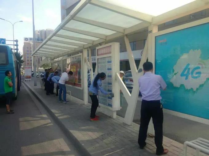 公交候車亭上面粘有透明膠、不干膠、漿糊等,有的候車亭燈箱還被糊上了好幾層廣告,黨員們手拿小鏟子、小刷子、清潔球、水桶等清除工具,三人一組、兩人一伙,有的噴水,有的用鏟刀用力清除,一個個干的熱火朝天。經(jīng)過三個多小時的清理,西四路兩側(cè)公交候車亭衛(wèi)生死角和野廣告被清理干凈,市民的候車環(huán)境衛(wèi)生得到很大改觀。在候車亭等車的市民們高興地說:“站牌上到處都是小廣告,各種顏色的,像牛皮癬一樣討厭,這些黨員真能干,小廣告沒有了,在候車亭等車心情也舒暢了?!?BR> 通過本次活動,黨員們用自己的實際行動為清潔公交候車亭、愛護(hù)公共環(huán)境作出了努力,使公交候車亭外觀得到了凈化,營造了一個整潔美觀、文明和諧的候車環(huán)境,增強(qiáng)了黨組織的凝聚力和戰(zhàn)斗力,從而使黨員們更好地踐行黨員先鋒模范作用,得到了市民們的一致好評。
