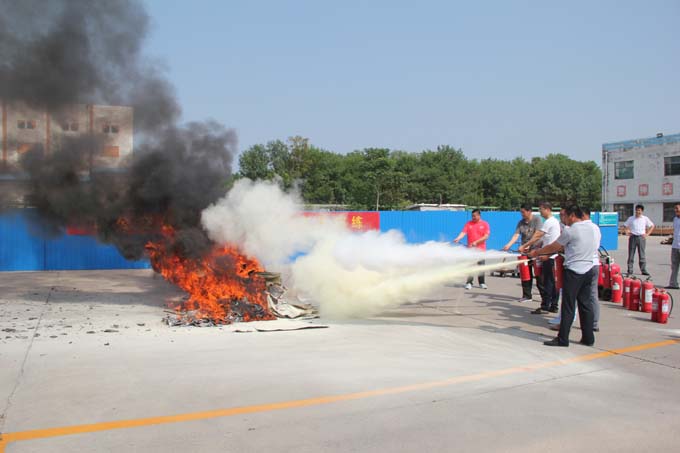 演練開始前安稽科科長王清峰結(jié)合單位特點和實際案例,詳細(xì)講解了發(fā)生火災(zāi)時人員疏散、火場自救逃生、滅火器如何使用等消防知識。演練中,參加演練人員分批進(jìn)行了消防滅火演習(xí)。