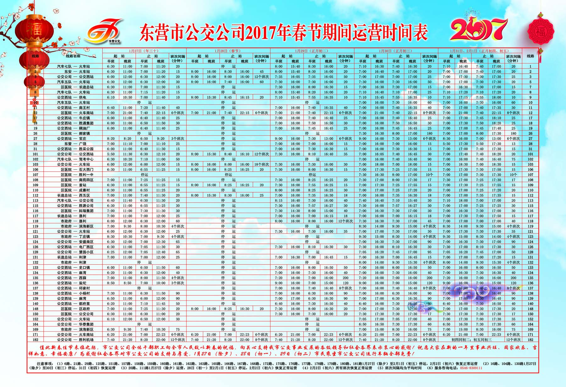 值此新春佳節(jié)來臨之際,市公交公司全體干部職工向全市人民致以新春的祝福,向關(guān)心支持我市公交事業(yè)發(fā)展的各級領(lǐng)導(dǎo)和社會(huì)各界表示衷心的感謝!祝愿大家在新的一年里事業(yè)興旺、闔家歡樂、吉祥如意、幸福安康!為感謝社會(huì)各界對市公交公司的支持與厚愛,1月27日(除夕)、28日(年初一)、29(初二)市民乘坐公交公司運(yùn)營車輛全部免費(fèi)!