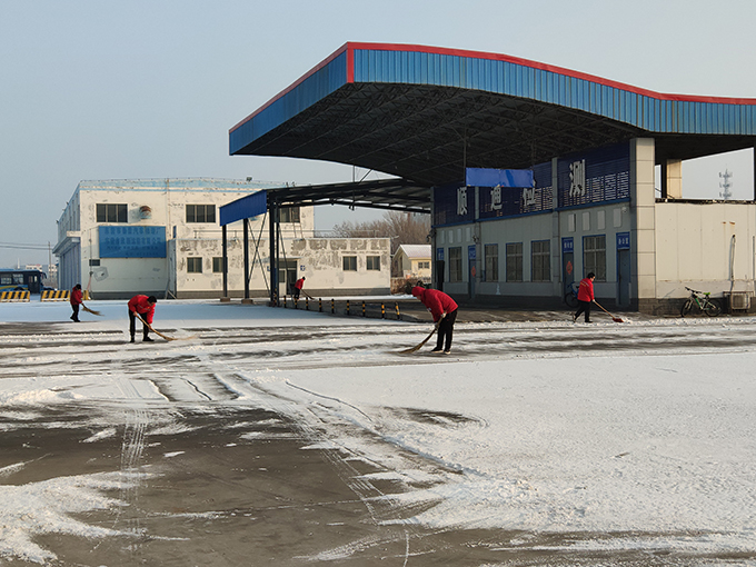 經(jīng)過(guò)一個(gè)多小時(shí)的奮戰(zhàn),大家將站內(nèi)的主要出入口和道路的積雪全部清掃干凈。雖然大家弄濕了鞋子、弄臟了衣服,但是看著為客戶開辟的這條暢通之路,每個(gè)人臉上都洋溢著自豪的笑容。