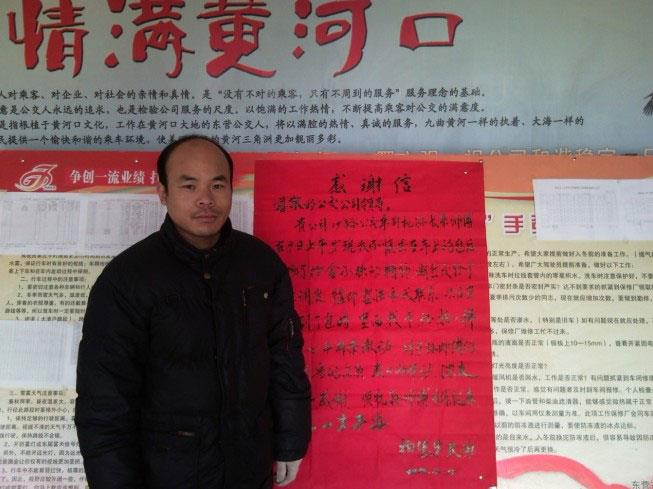 2010年12月13日下午,勝利油田稠油廠保衛(wèi)處楊德華先生頂著紛紛的雪花、把一封表揚信送到了市公交公司汽車三隊,感謝三隊駕駛員孫長來拾金不昧的事跡。